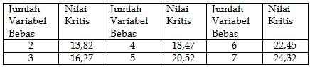 m = Jumlah Variabel Bebas