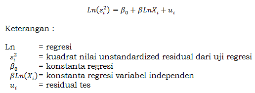 Uji Park dilakukan dengan meregresikan nilai residual (Lne2) dengan masing-masing variabel independent. “The Park test suggests that if heteroscedasticity is present, the heteroscedastic variance may be systematically related to one or more of the explanatory variables.” Rumus uji Park sebagai berikut:
