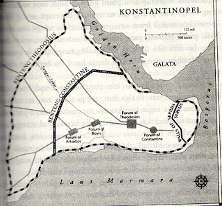 Mengapa benteng Konstantinopel sangat sulit ditembus? Ini karena ia terletak di sepetak tanah segitiga berbentuk tanduk badak, menghadap Selat Bosporus di satu sisi dan Laut Marmara di sisi lain. Di kedua sisi ada dinding laut yang tinggi dan tanjung-tanjung yang membentuk selat sempit. Dari selat tersebut Byzantium bisa memborbardir setiap kapal yang coba mendekat untuk menyerang kota.